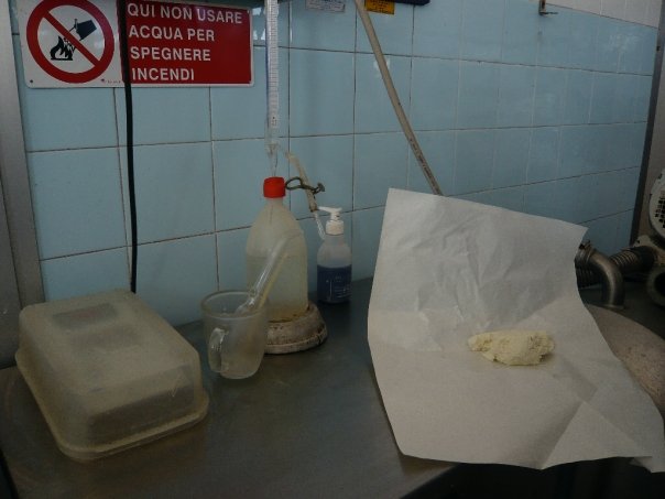 Published February 7, 2013 at 604 × 453 in Understanding cheese – A visit to a Parmiggiano-Reggiano workshop Fresh curd!