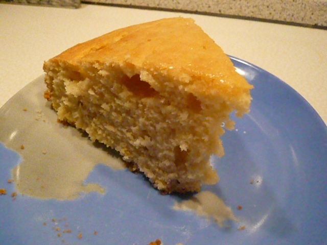 The cake came out looking nice (if a bit homely for the whole wheat brownishness) and it smelled lovely. It then just so happened that we did not eat the cake the next day but on the Tuesday, so between that and the whole wheat goodness, I was not surprised that it came out a little dry.